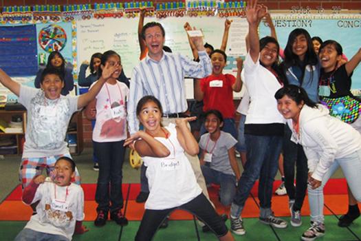 Our curriculum and teacher training services are developed and led by Mr. Jonas Basom, winner of the Bravo Award for Outstanding Arts Specialist of California. Mr. Basom has developed his pedagogy over 23 years teaching in CA private and public schools, including 9 years in the LAUSD as a traveling theatre specialist, where he developed and taught 12 model lessons for grades K-6 integrating drama and literacy while coaching teachers and leading staff development. He is now a consultant presenter for school districts, arts organizations, and educational conferences across the USA and internationally. He has trained thousands of teachers and students in more than 30 states and 10 countries. Mr. Basom currently instructs teachers in arts education and classroom management as an adjunct professor at Pepperdine University and the University of Phoenix.
