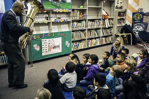 Professional musicians from Santa Cecilia Orchestra provide students with an introduction to the instruments of the symphony orchestra. Each and every classroom is visited and individual musicians provide a 25-minute presentation to the students in their very own classroom. Visit culminates with an invitation to our upcoming symphony orchestra concerts. The students may attend free of charge with their entire family. Prior to every concert there are tables filled with instruments from the brass, woodwind, string and percussion family. All in attendance are invited to try the instruments.