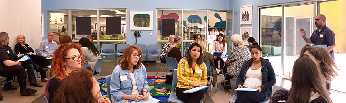 On Friday, April 27, educators from 24 school districts attended the District Arts Coordinator Meet-up at the A.C. Bilbrew Library and Willowbrook Senior Center, presented in partnership with the LA County Office of Education. Attendees networked, shared successes, and learned from colleagues. Pauline Kamiyama from Civic Art led a tour of the art collections at the library. Tarcio Lara of Valencia Arts Academy in Pico Rivera led a conversation about culturally relevant and sustaining pedagogy. The day ended with a conversation about engaging arts and cultural assets in our own communities and looking ahead to opportunities for 2018–19.